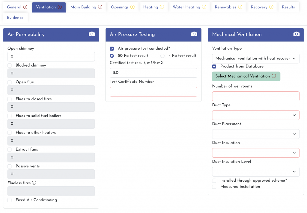 Quite a lot has changed, requiring measurements such as window dimensions and allowing additional data such as air permeability test results to be entered.